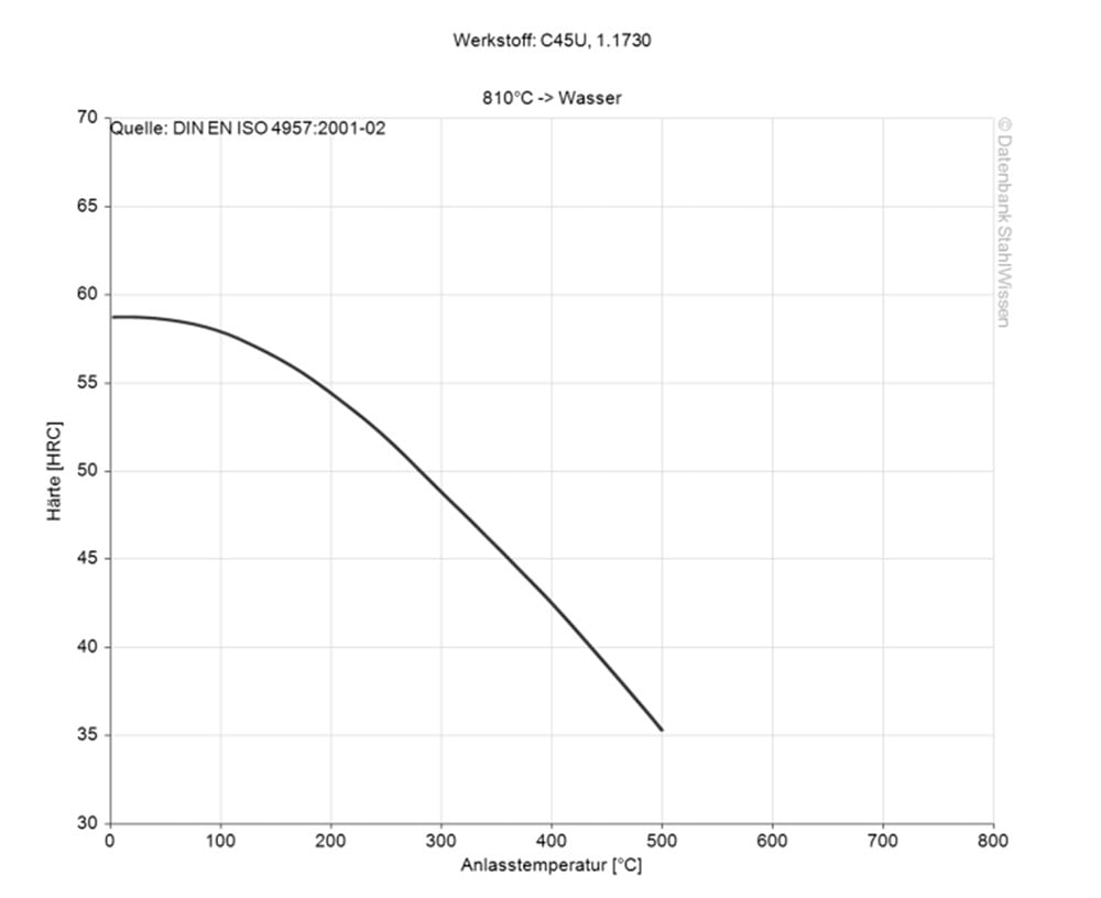 The 1.1730 can be tempered in a temperature range of 400 – 680 °C. The temperature depends on the subsequent application for which the 1.1730 is to be used.
