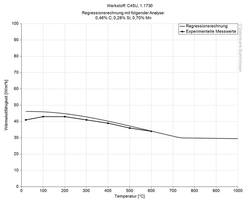The heat conductivity for the 1.1730 at room temperature is at 44,9 W/m*K.