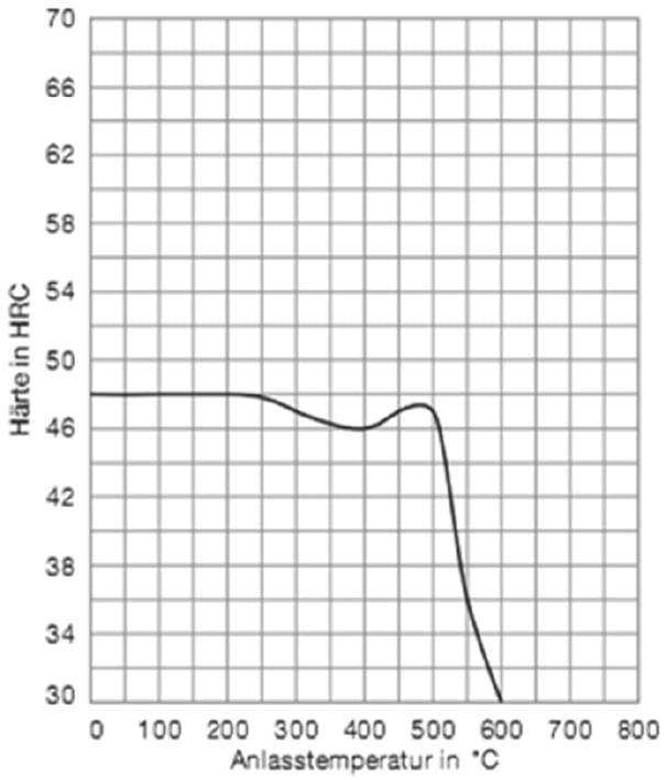 To temper the 1.2080 mod. is heated evenly to the selected temperature and held there for 1 hour per 20 mm of thickness, but for at least 2 hours.