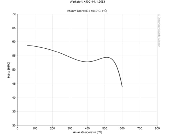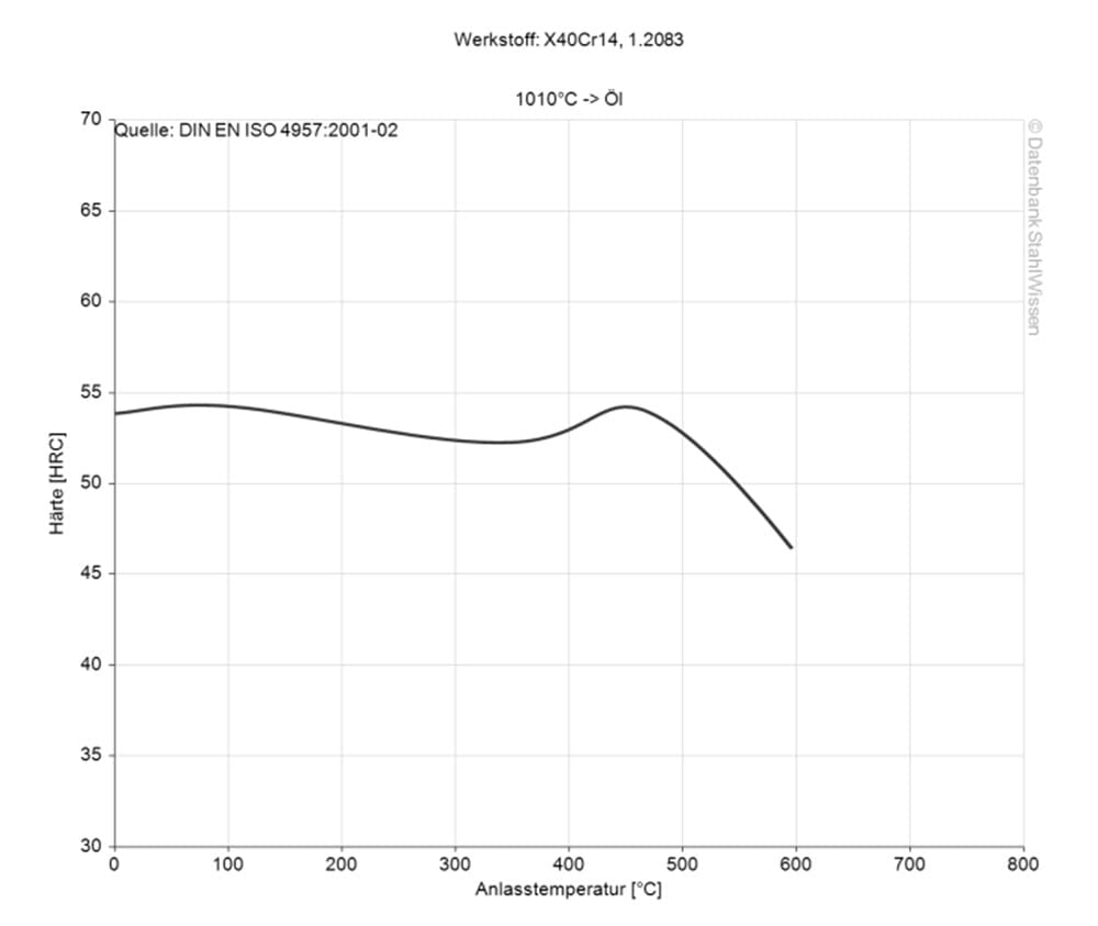 After the 1.2083 has been machined it is heated evenly to a temperature of 650 °C in which it is held for 2 hours. Then it gets cooled down in the oven to a temperature of 500 °C and can then cool down further in air.