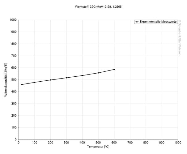 The specific heat capacity of tool steel 1.2367 at room temperature is 0.46 J/g*K. This value indicates how much heat is required to heat a specific amount of material by 1 Kelvin.
