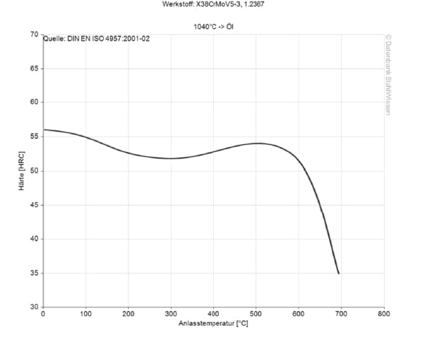 The 1.2367 achieves a working hardness of 50 – 54 HRC.