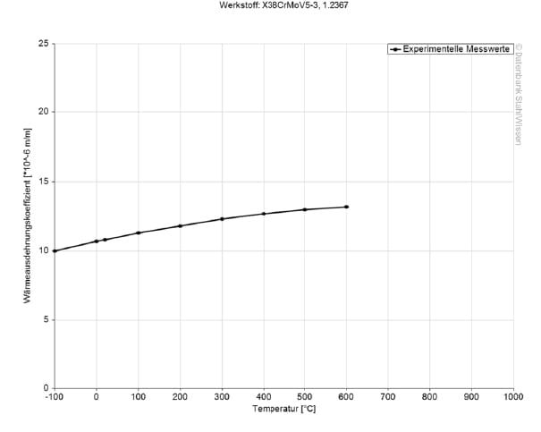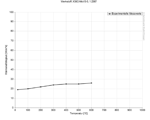 The following table shows the thermal conductivity of tool steel 1.2367 at different temperatures.