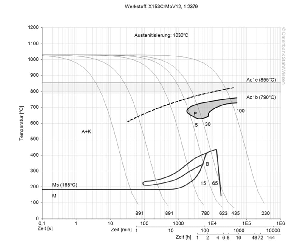 Heat treatment is used to determine material properties. It should therefore always be carried out with care. Properties such as strength, toughness, surface hardness and temperature resistance are determined, which in turn can extend/improve the service life of parts, tools and components.Heat treatment includes solution annealing, soft annealing, normalising, stress relief annealing, but also tempering, hardening and quenching or tempering. Tool steel 1.2379 is a secondary hardener. This material becomes harder through single or double tempering. During tempering, special carbides are precipitated and/or residual austenite is converted to martensite.