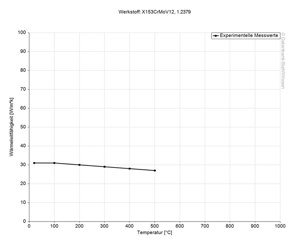 For the 1.2379 the heat conductivity is typically between 16 – 25 W/(m*K) at room temperature.