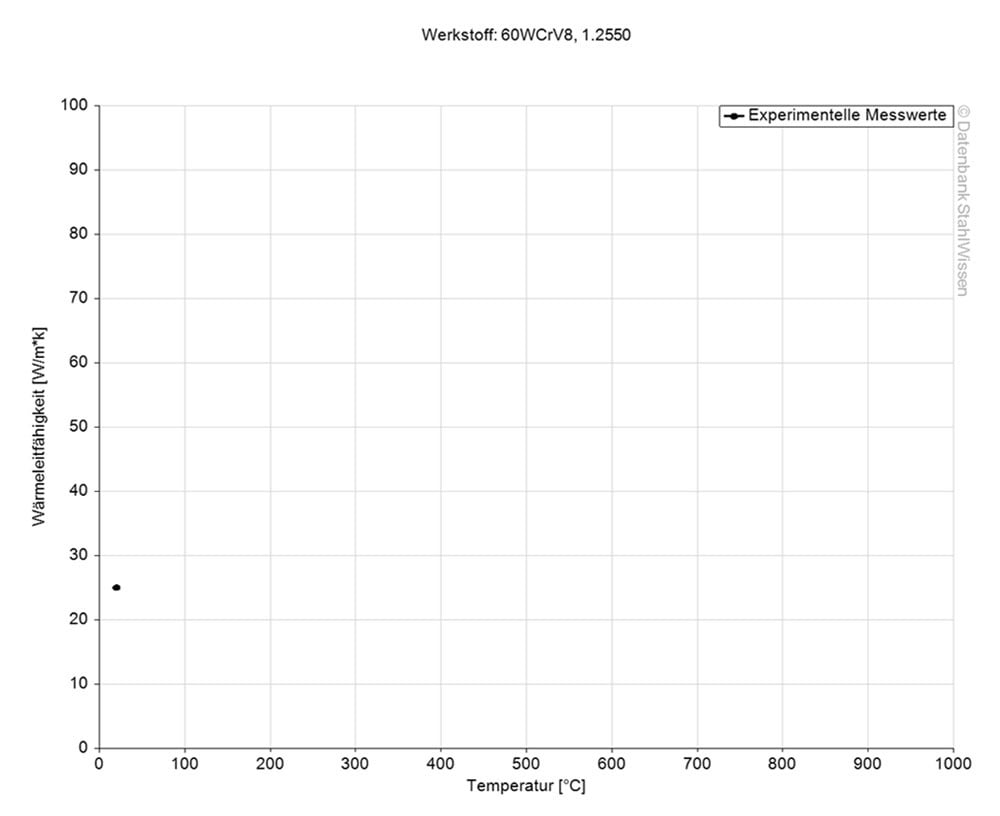 The following table shows the heat conductivity for tool steel 1.2550 at various temperatures.