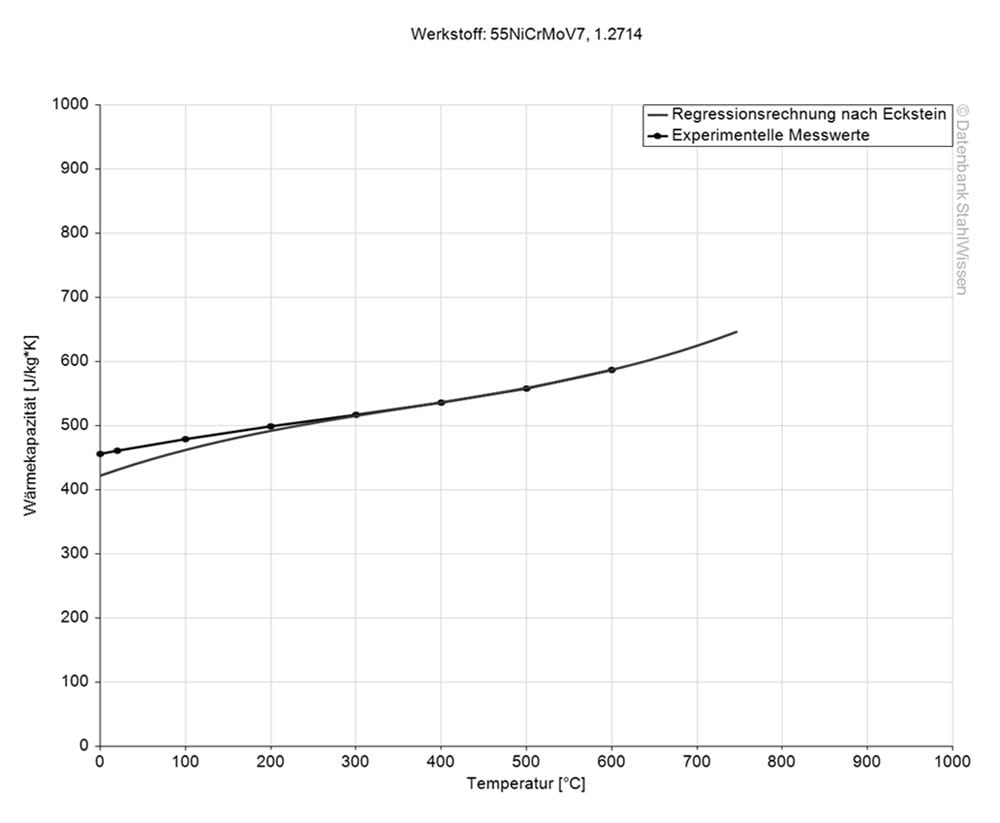 Das Spannungs- und Dehnungsmodul oder das Elastizitätsmodul (Youngscher Modul) für Werkzeugstahl 1.2714 liegt bei 190 – 210 kN/mm2.