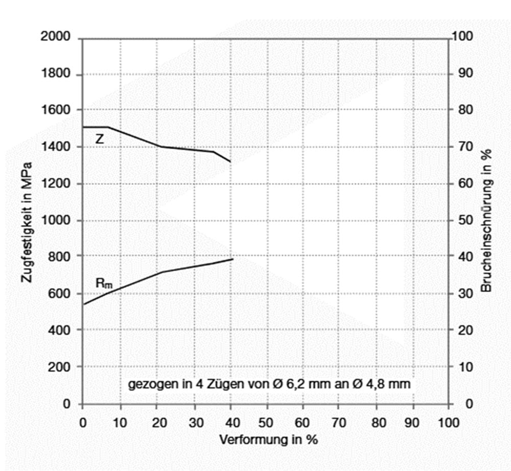 1.4006 has a tensile strength of approx. 850 N/mm2. To achieve this value, a tensile test is carried out to show how much force is required to stretch or elongate a sample before it breaks.