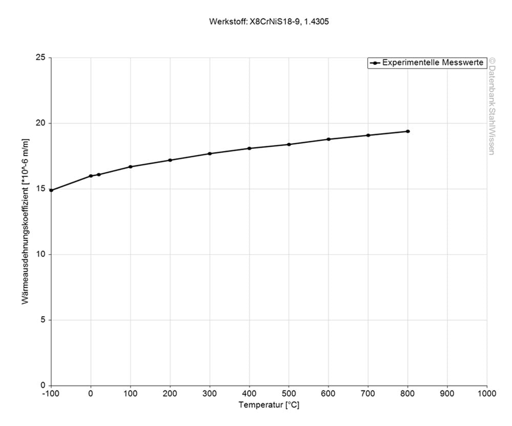 Like other materials, stainless steel 1.4305 can change its dimensions when heated or cooled. Under constant stress at higher temperatures, 1.4305 can creep, a slow and time-dependent deformation.
