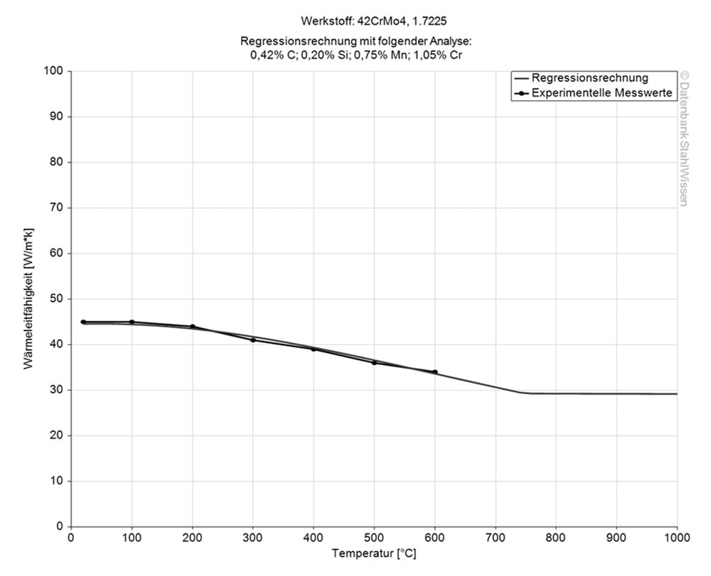 The heat conductivity for the 1.7225+QT at room temperature is at 42,6 W/(m*K).