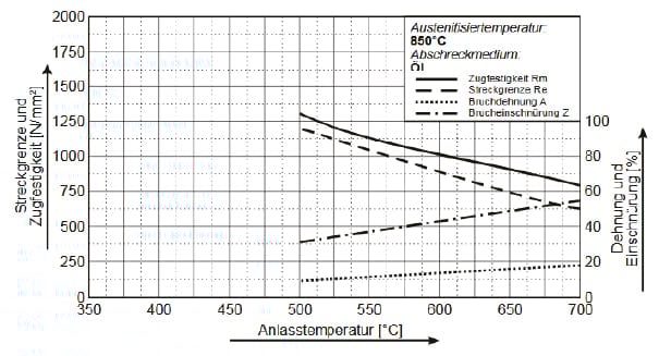 The 1.8550 arrives in a tempered condition and can be stress-relieved in this condition at 30–50 °C below the tempering temperature.