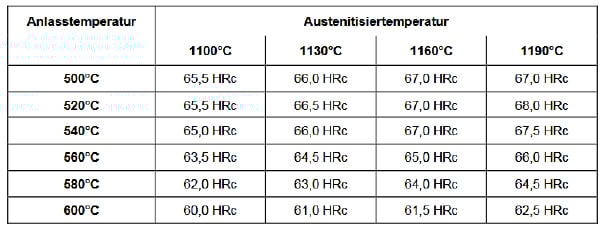 - High-temperature strength (red hardness) due to the addition of approx. 8.5% cobalt