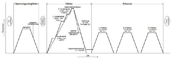 The heat treatment process determines the material properties. It should therefore always be carried out with care. Properties such as strength, toughness, surface hardness and temperature resistance are determined, which in turn can extend/improve the service life of parts, tools and components.